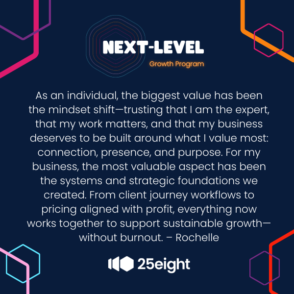 The Next-Level Growth Program isn’t about adding more to your plate. It’s about reducing noise, improving focus, and helping you make better decisions with the time and energy you already have.