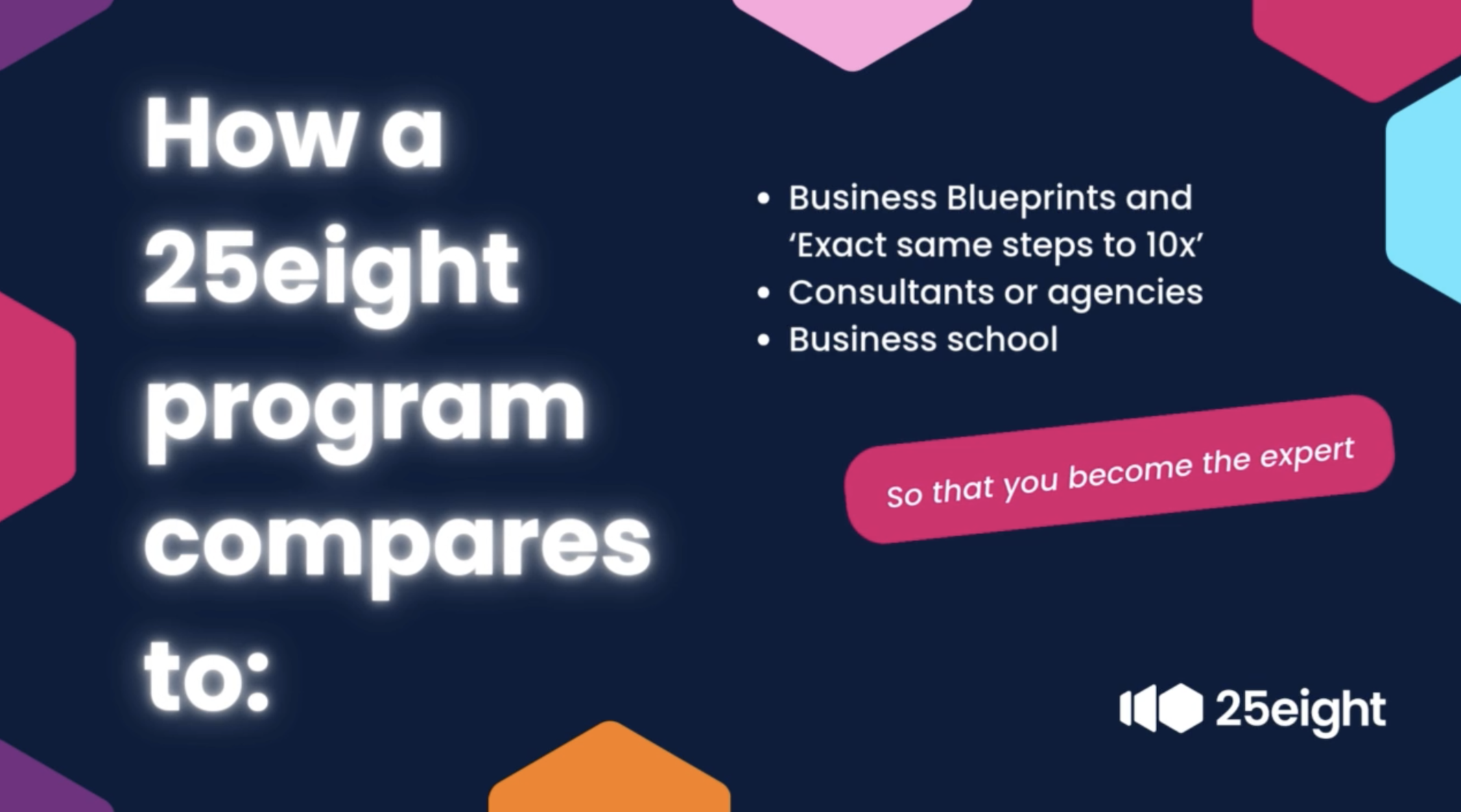 We do things differently at 25eight and the benefits are long lasting. In our Business School, your Business is the subject.